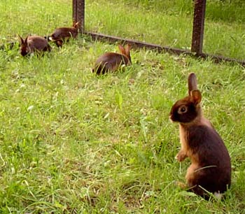 Der Körper ist leicht gedrungen, walzenförmig, mit feinen Gliedmaßen. Der Rücken verläuft ebenmäßig und ist hinten gut abgerundet. Der Kopf ist kurz, mit breiter Stirn, dicht am Körper angesetzt. Die Ohren sind kurz und fleischig, gut behaart und entsprechen in ihrer Länge dem Körper. Die Häsin ist etwas feiner in der Körperform und wammenfrei.